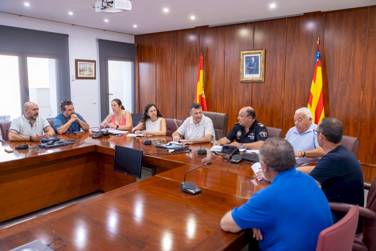 Esta mañana ha tenido lugar una reunión de trabajo en el Salón de Plenos del Ayuntamiento de l'Alfàs del Pi, en la que han participado representantes y técnicos de las concejalías de Fiestas y Tradiciones, Servicios Técnicos y Limpieza, Medio Ambiente y Playas, Seguridad Ciudadana y Agentes de la Policía Local y Protección Ciudadana, previa a la puesta en marcha del dispositivo especial de seguridad, que velará por el cumplimiento de la normativa y la celebración de la mejor Nit de Sant Joan.