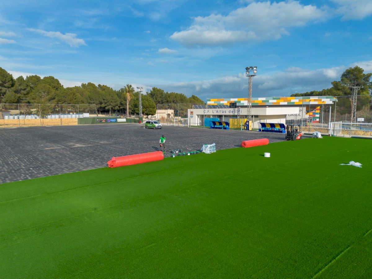 En marcha las obras de renovación del campo de césped artificial del polideportivo de l’Alfàs