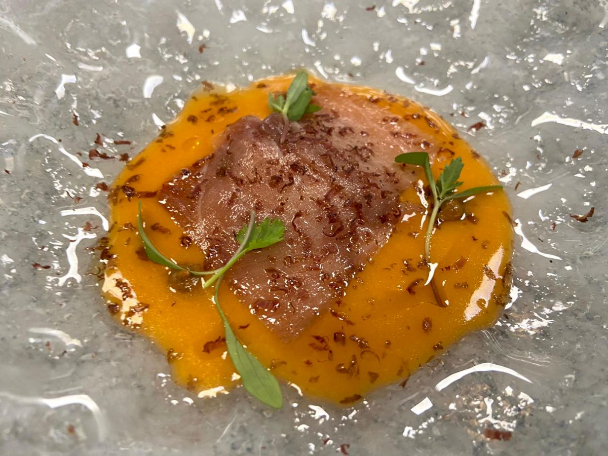 Esta mañana le ha tocado el turno a uno de los mejores chefs de Alicante, Kiko Moya, del Restaurante L'Escaleta que ha cocinado un salmorejo de atún curado, escabeche de Foie y maíz dulce, vichysoisse de boletus, trufa y hierbas secas de proximidad, maíz y huitlacoche, en el espacio creado en el Centro Educativo de Recursos de Consumo de Alicante y ofrecido masterclass.