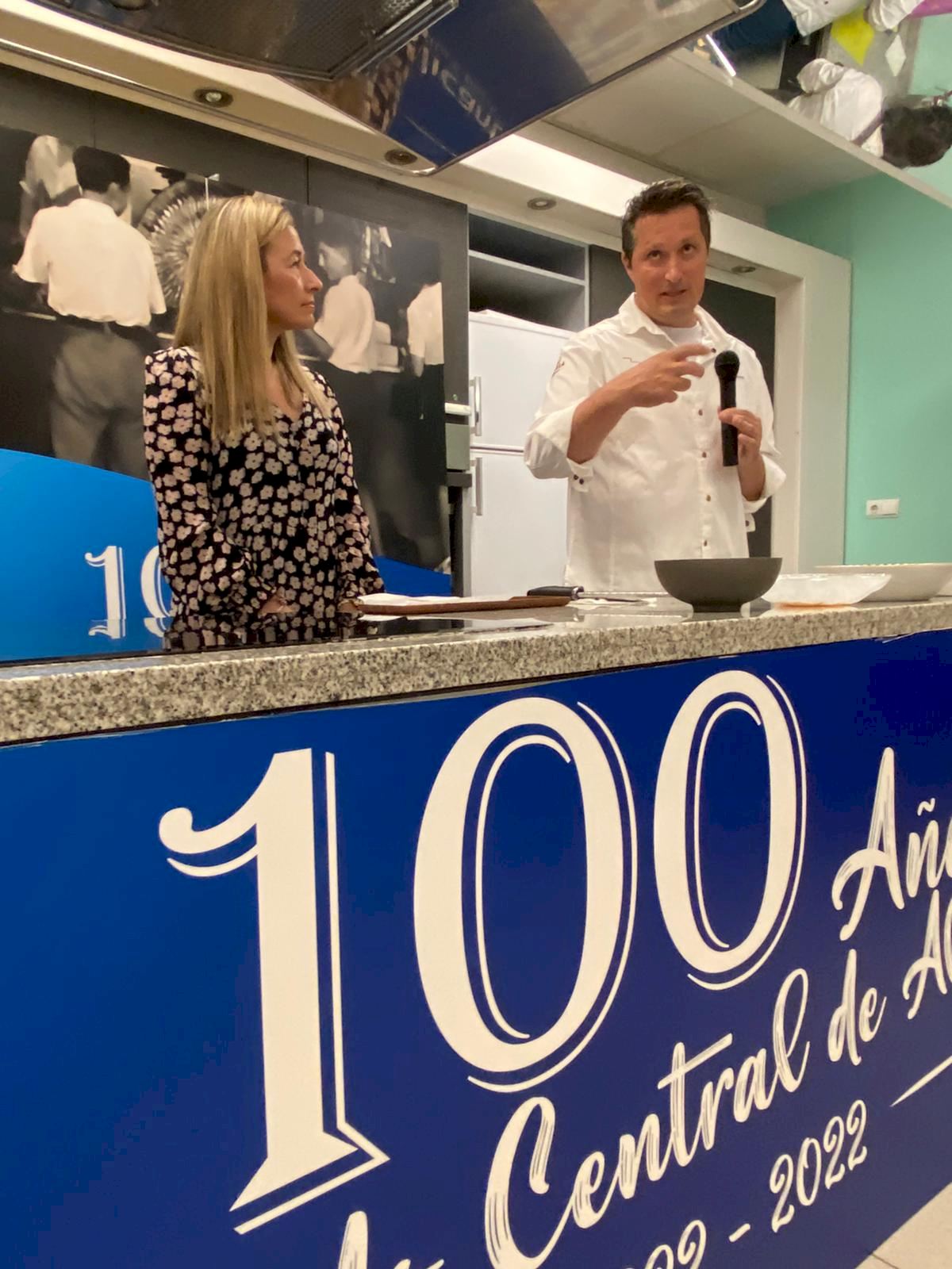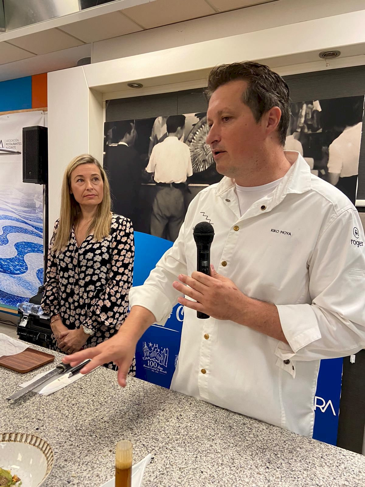 El Ayuntamiento de Alicante ha organizado un espacio de degustaciones, masterclass y showcooking con motivo del Centenario del Mercado Central, donde esta mañana ha participado el chef Kiko Moya del Restaurante L´Escaleta, que cuenta con dos estrellas Michelín y tres Soles Repsol, al que ha acudido la concejala de Mercados, Lidia López.