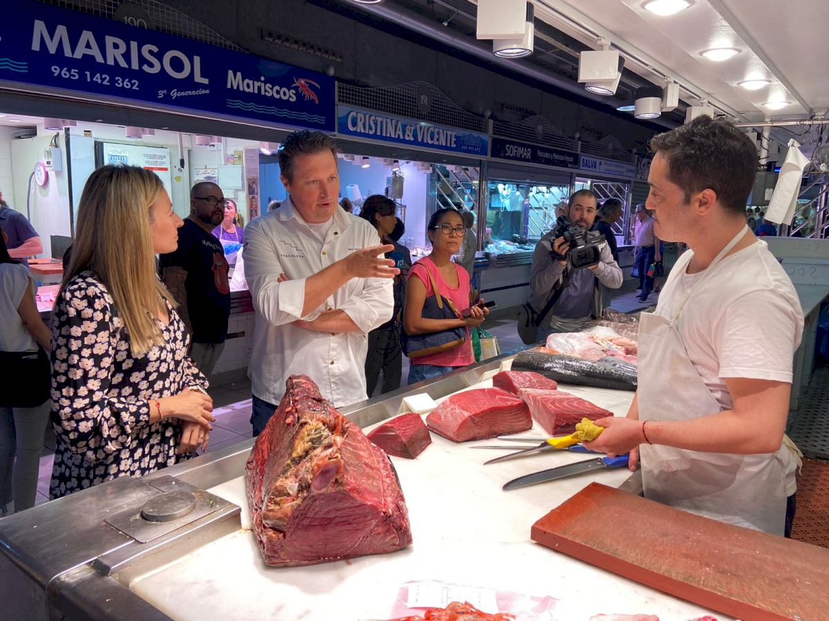 La riqueza gastronómica de Alicante, ha señalado la concejala de Mercados viene acompañada de “muchos años de trabajo cuidando la oferta de productos de calidad con nuestros mejores cocineros y restaurantes, y de unos chefs de primer nivel como Kiko Moya que hemos podido apreciar su talento en el Mercado esta mañana, basada en criterios de calidad, ellos son los mejores embajadores de la cocina y de nuestros productos alicantinos”.