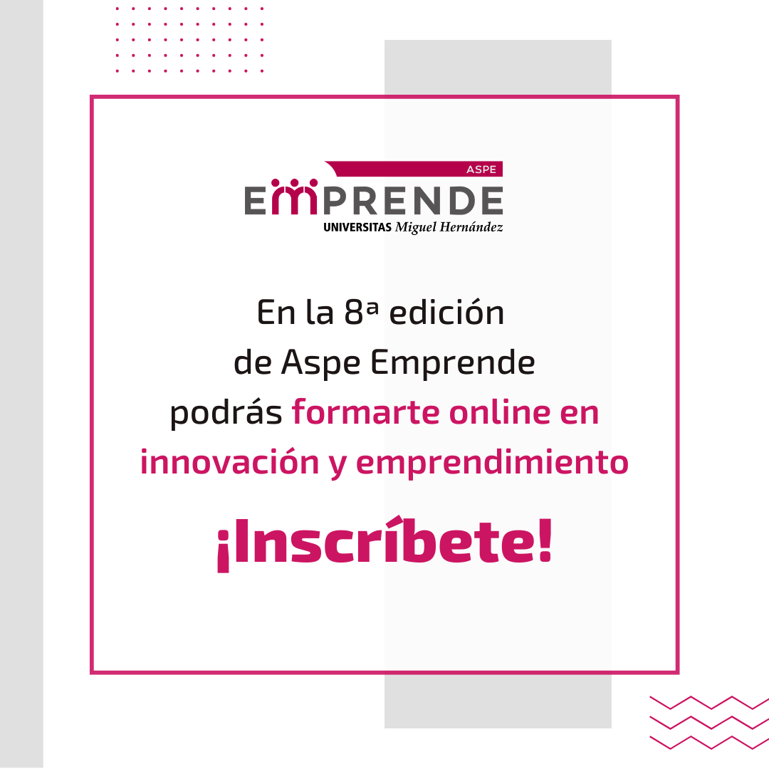 Aspe Emprende ofrece a los vecinos del municipio formación online con los NanoCursos UMH sobre Innovación y Emprendimiento