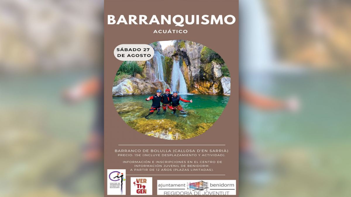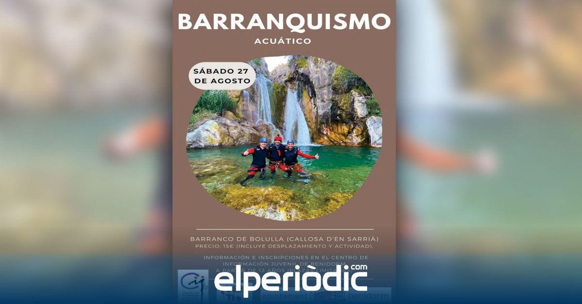 La Concejalía de Juventud del Ayuntamiento de Benidorm organiza el próximo 27 de agosto una actividad de barranquismo acuático que se desarrollará en el Barranco de Bolulla, en el término municipal de Callosa d’En Sarrià.