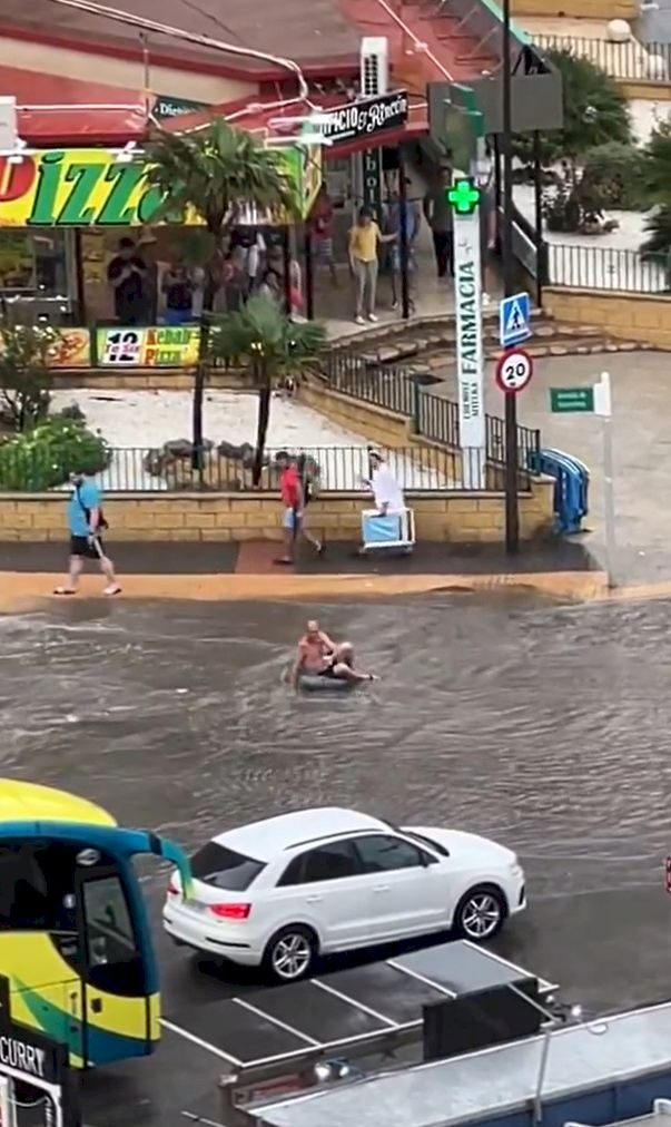 Uno de los momentos más llamativos de esta inusual tormenta fue captado en vídeo: un hombre, con un flotador inflable, descendía por una de las calles anegadas cercanas al paseo marítimo. Esta divertida escena, que rápidamente se viralizó, refleja el carácter impredecible de la naturaleza y la capacidad de adaptación de los ciudadanos ante situaciones extremas.