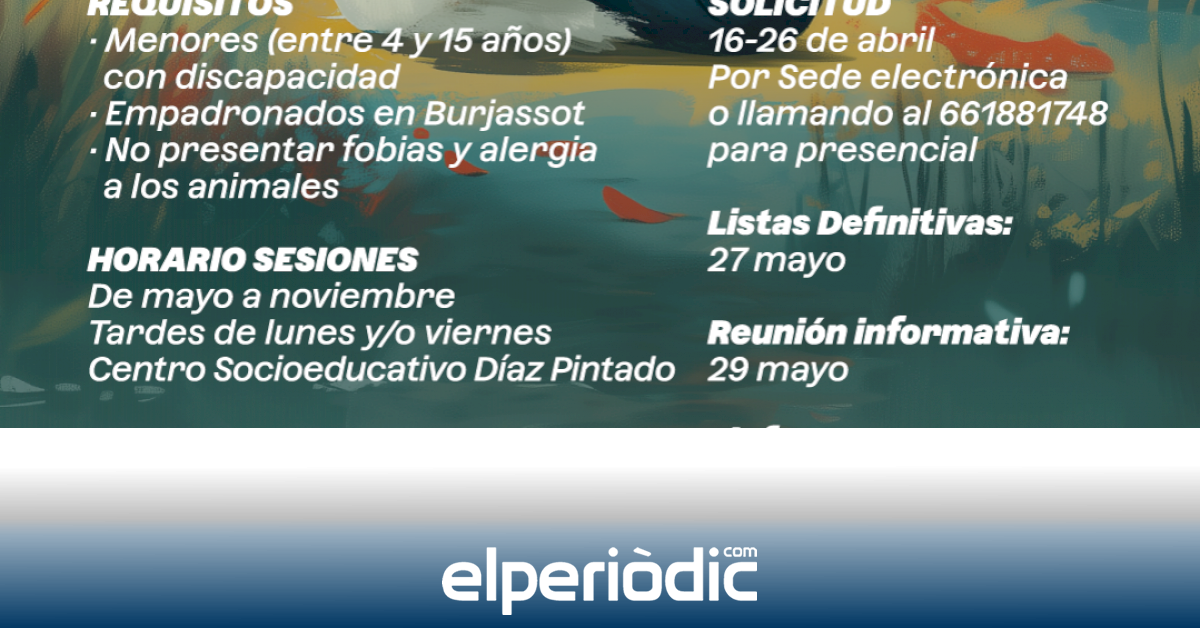 Después de la buena acogida del proyecto desarrollado hace unos meses en los que niñas y niños con TEA de Burjassot pudieron ser parte de un programa de ocio con animales, el Ayuntamiento de la localidad ha dado un paso más y va a poner en marcha un nuevo proyecto, en esta ocasión, abierto a todas y todos los menores con discapacidad de entre 4 y 15 años empadronados en Burjassot.