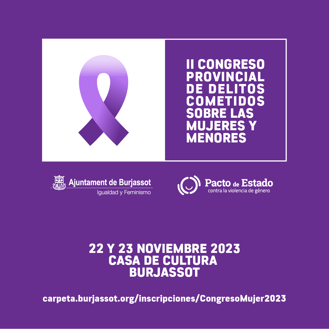Los días 22 y 23 de noviembre, la Casa de Cultura de Burjassot va a ser la sede del II Congreso Provincial de delitos cometidos sobre las mujeres y menores. El Congreso cuenta con la colaboración del Ayuntamiento de la localidad.