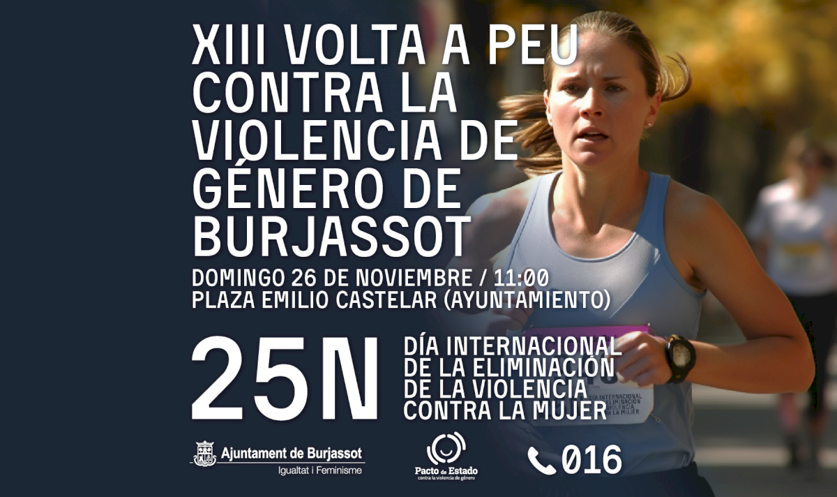 La programación que el Ayuntamiento de Burjassot ha programado para conmemorar el Día Internacional contra la Violencia de Género culminará el domingo 26 de noviembre con la celebración de la Volta a Peu, una marcha que en 2023 alcanzará su decimotercera edición y que, en Burjassot, se celebra como una manera más, una manera deportiva, saludable, reivindicativa y solidaria para posicionarse rotundamente en contra de cualquier tipo de violencia hacia las mujeres, por el hecho de serlo.