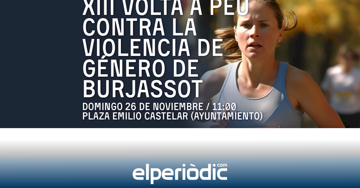 La XIII Volta a Peu contra la Violencia de Género de Burjassot 2023 se celebrará como una marcha de 4 kilómetros y comenzará, a las 11 h, en la Plaza de Emilio Castelar. Las personas que deseen asistir ya pueden inscribirse en este ENLACE. La recogida de dorsales y obsequios será el mismo día de la carrera, el domingo 26 de noviembre, en la Plaza de Emilio Castelar, entre las 9 h y las 10:30 h.