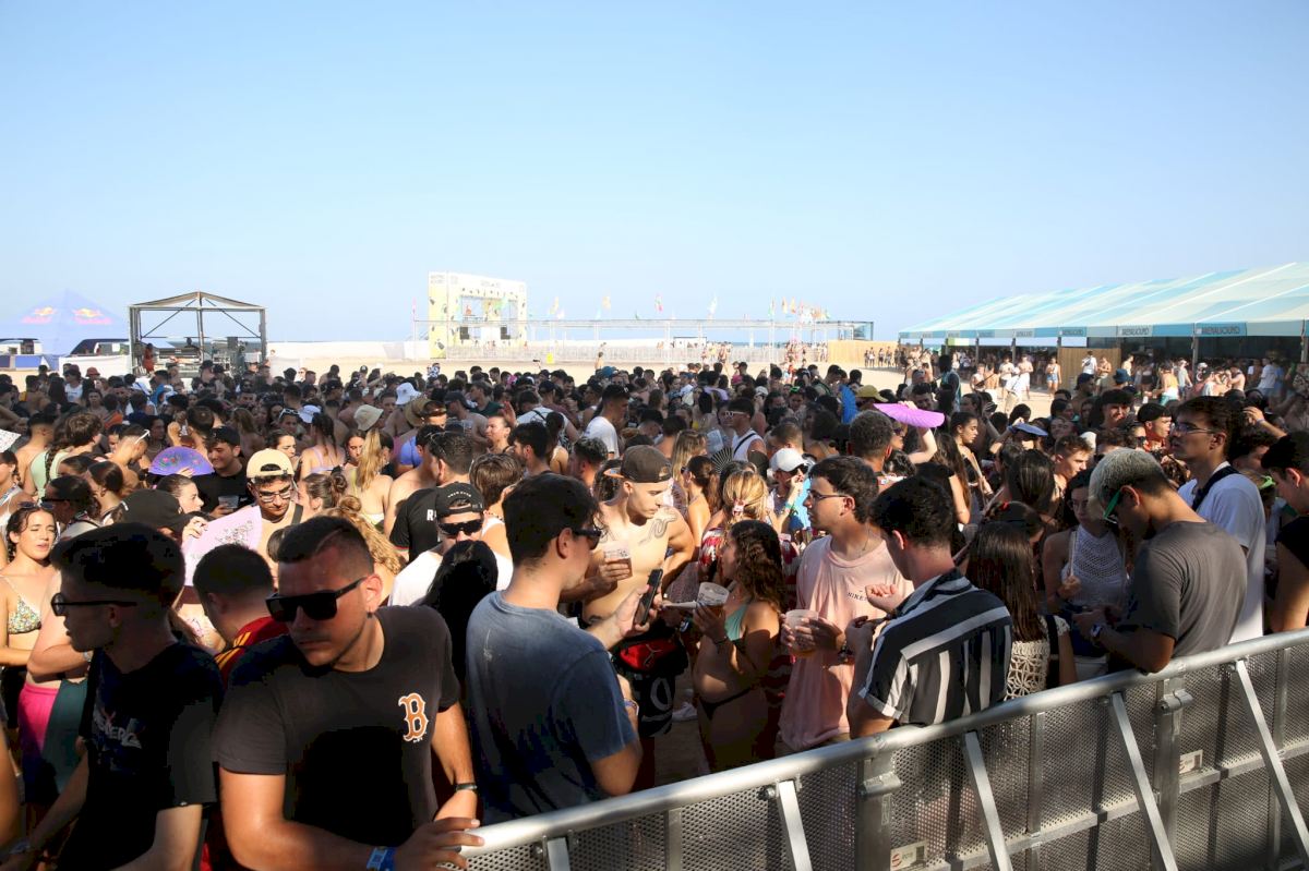 Tras la llegada de los primeros sounders, en Burriana ya está en marcha una nueva edición del Arenal Sound. La piscina será durante estas dos primeras jornadas la gran protagonista y los sounders se refrescarán y bailarán al ritmo de la música de varios artistas que llevarán la música del momento hasta la zona marítima de la capital de la comarca de la Plana Baixa.