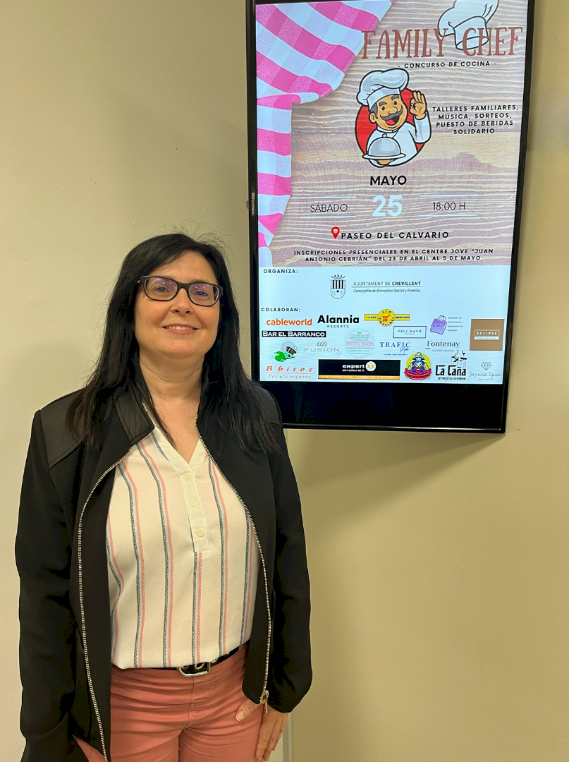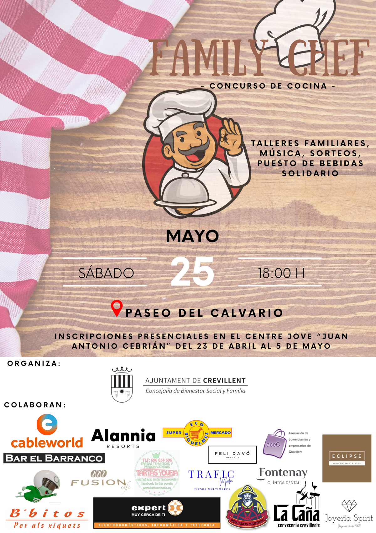 La concejala de Familia en el Ayuntamiento de Crevillent, María Jesús Alfonso Egea, ha anunciado este martes el lanzamiento del concurso familiar de cocina “Family Chef”, que tendrá su fase final en el Paseo del Calvario durante la tarde del próximo 25 de mayo. Esta actividad ha abierto su plazo de inscripciones presenciales en el Centre Jove “Juan Antonio Cebrián” hasta el próximo 5 de mayo. La edil ha manifestado que “esta iniciativa, enmarcada en el mes de mayo que será el mes de la familia, pretende fomentar los valores familiares y convertirse en una actividad en la que pueda participar toda la familia, desde abuelos, primos, nietos, hijos…”.