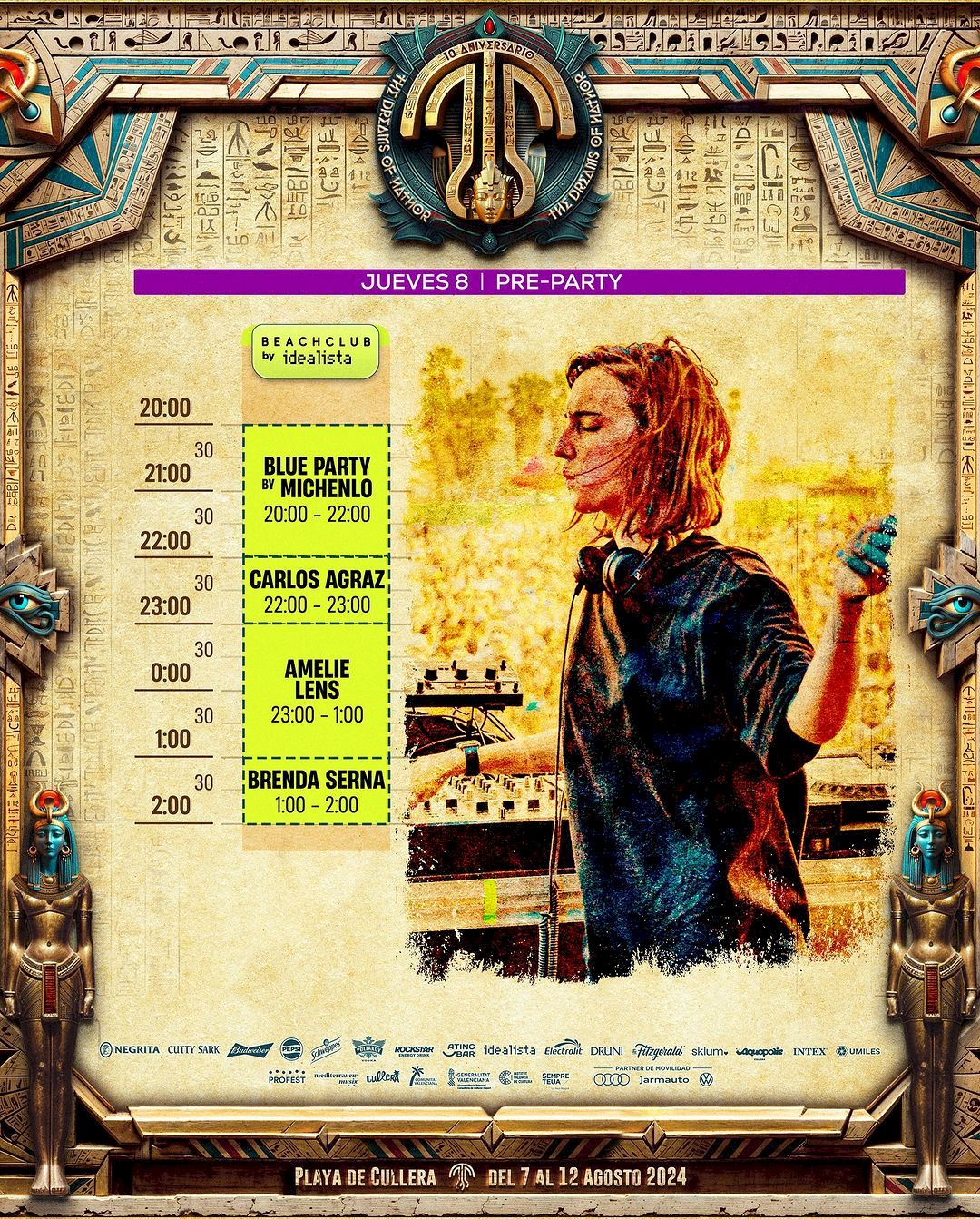 El menú musical de la preparty tiene hoy una protagonista absoluta: la gran dama del Techno, la belga Amelie Lens. Pero habrá mucha música más en el escenario del Medusa Beach Club. Ahí van algunas propuestas...