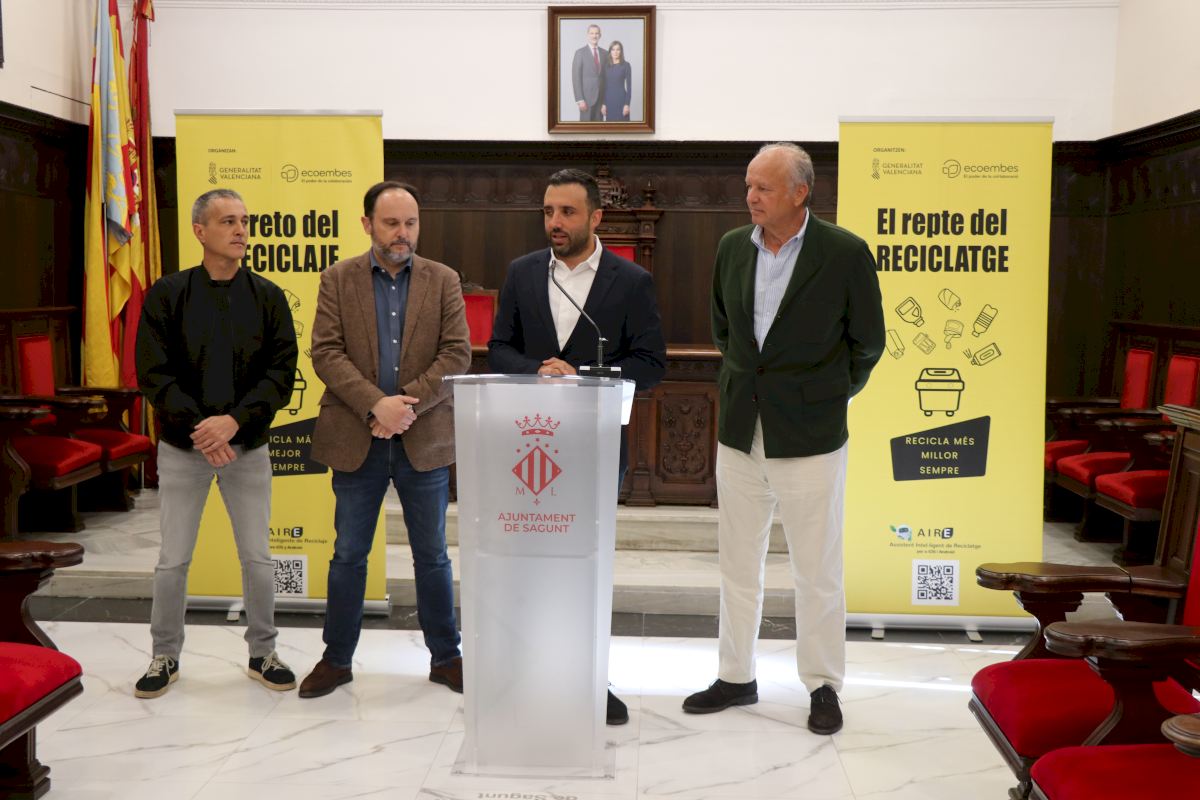 Esta mañana ha tenido lugar la presentación de la campaña “El Reto del Reciclaje” cuya octava edición arranca hoy en Sagunto y finalizará el próximo 21 de mayo en Moncofa. El acto se ha celebrado en el Ayuntamiento de Sagunto y ha contado con la participación del alcalde de la localidad, Darío Moreno Lerga; del director general de Calidad y Educación Ambiental de la Vicepresidencia Tercera y Conselleria de Medio Ambiente, Infraestructuras, Territorio y de la Recuperación de la Generalitat Valenciana; Jorge Blanco y del responsable de Marketing de Ecoembes, Juan Manuel Alonso de Velasco.
