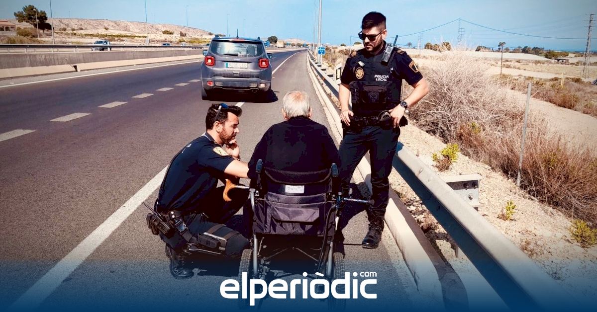 La Policía Local de Elche ha evitado una tragedia en la autovía A-7, donde ha descubierto que un anciano circulaba con su silla de ruedas en plena carretera.