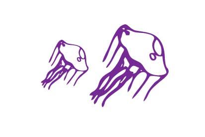 De color blanco y con dos medusas serigrafiadas en morado, esta bandera, como no podría ser de otra manera, indica la presencia de medusas en el mar.