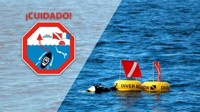 Bandera Alfa, de buceo y Bandera Bravo cumple la misma función que la bandera Alfa
