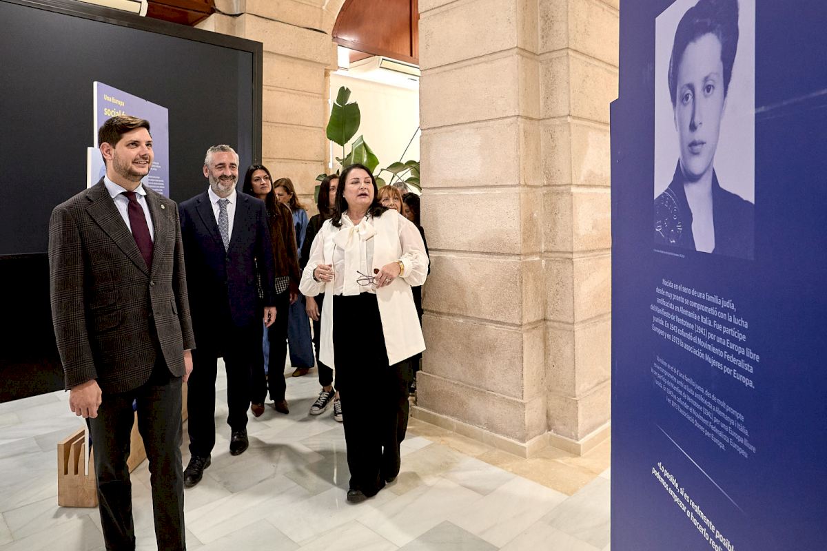 La muestra, ubicada en la Sala de los Arcos del Ayuntamiento, repasa cuatro décadas de transformación social, económica y política impulsadas por la pertenencia de España a la UE