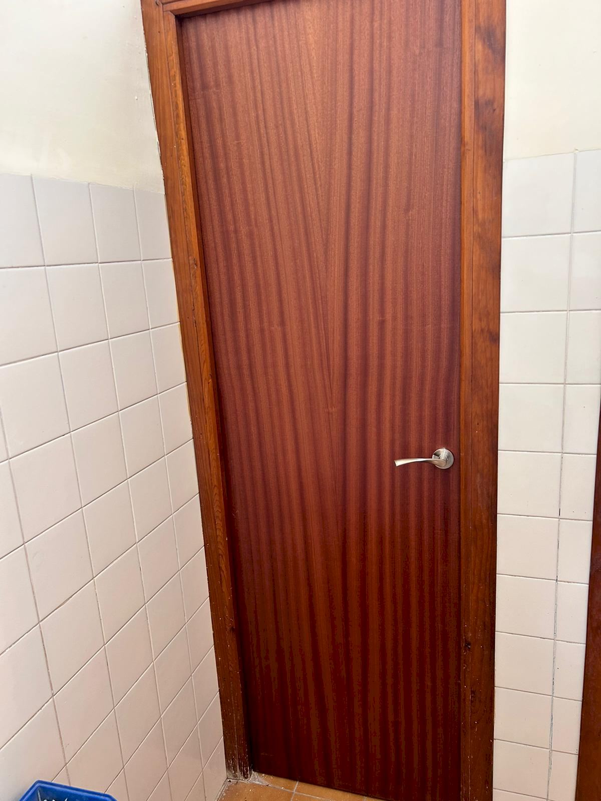 Con el objetivo de acondicionar este centro social como colegio electoral, se han adaptado los baños del antiguo aulario infantil para que puedan ser empleados por personas adultas, incorporando puertas y cambiando los retretes