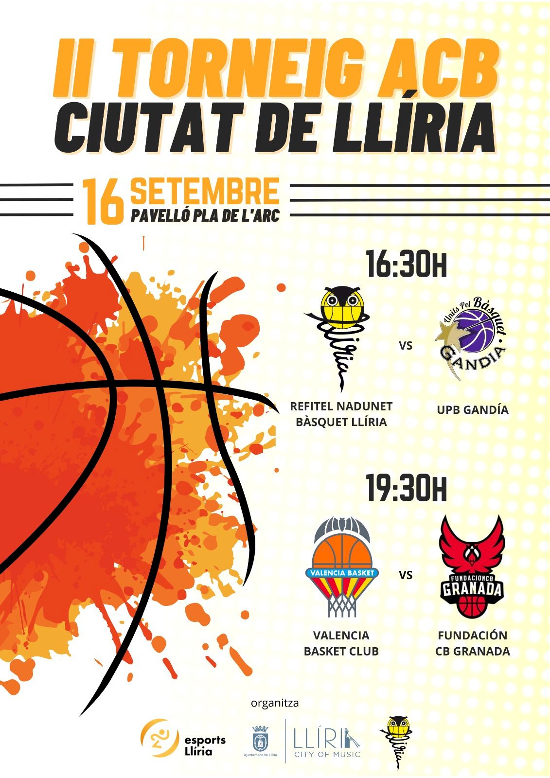 El torneo constará de una edición plata (con la participación del CB Llíria y el CB Gandía) y una edición de oro (con el ganador de la pasada edición, València Basket, y el equipo de ACB Fundación CB Granada). Ambos partidos se disputarán el sábado 16 de septiembre a las 16:30 y a las 19:30 respectivamente.