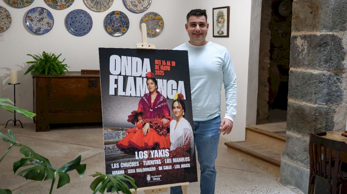 El Ayuntamiento de Onda ha presentado el cartel oficial de la cuarta edición de Onda Flamenca, el festival que llena las calles del municipio de compás y color, y que se celebrará los días 16, 17 y 18 de mayo en la Plaza España y la Font de Dins. La programación contará con artistas de primer nivel como Los Yakis, Tijeritas, Las Chuches, Los Manolos, Los Makis, De Calle, Jarana e Isra Maldonado.