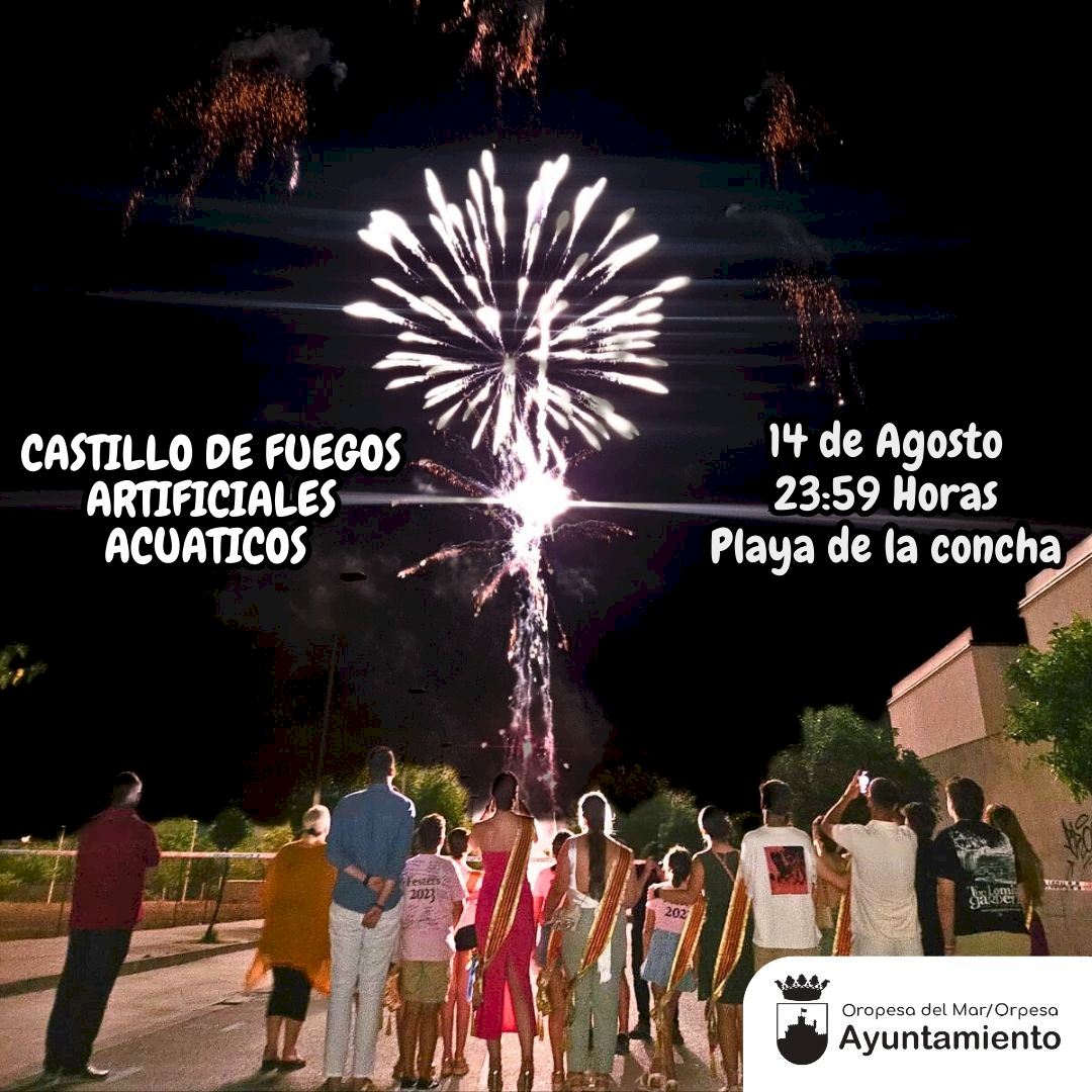 Este próximo 14 de agosto, a medianoche, tendrá lugar el castillo de Fuegos Artificiales Acuáticos que, como cada año, y como celebración del Día del Turista, organiza la concejalía de Turismo del Ayuntamiento de Oropesa del Mar.