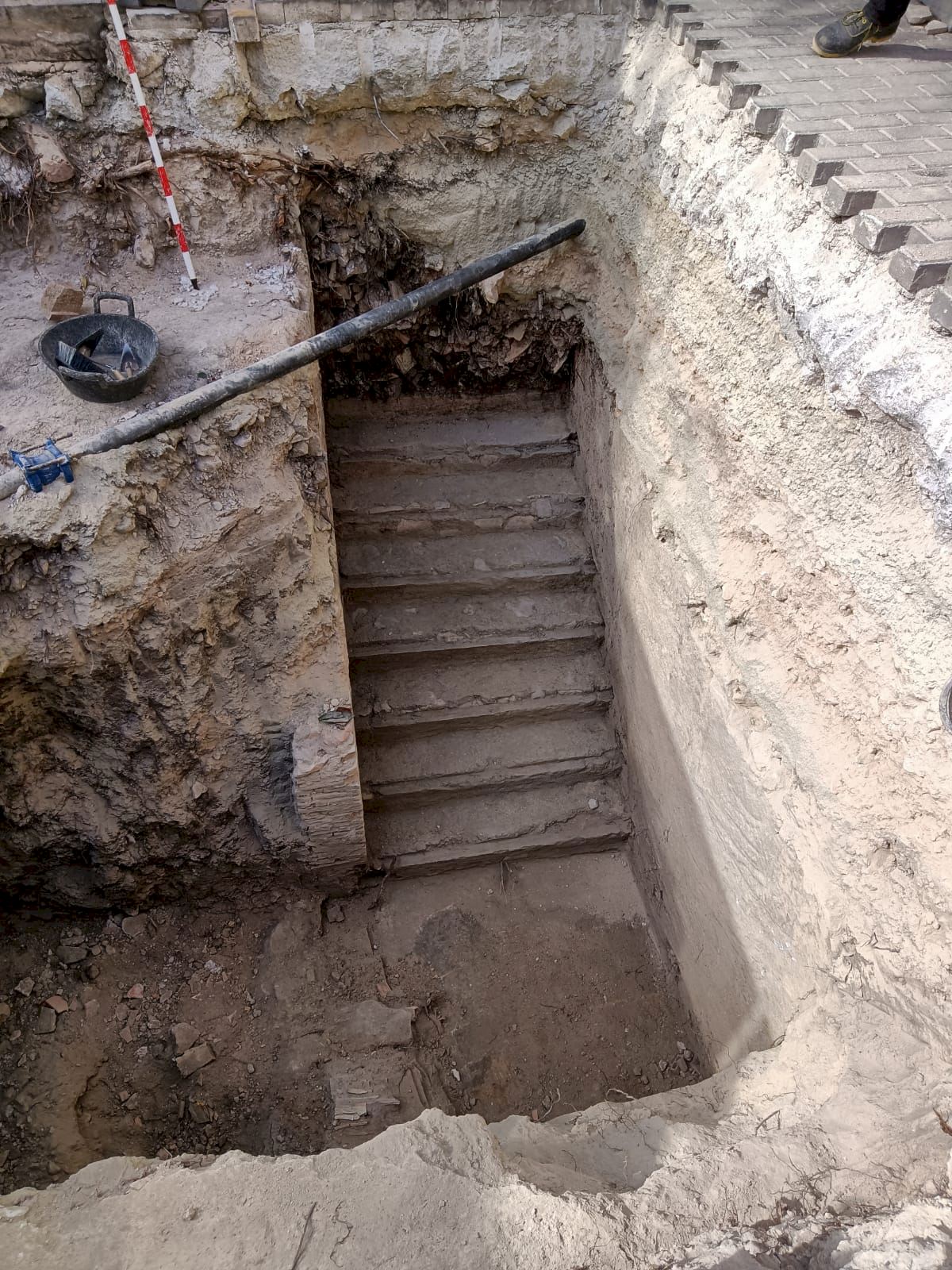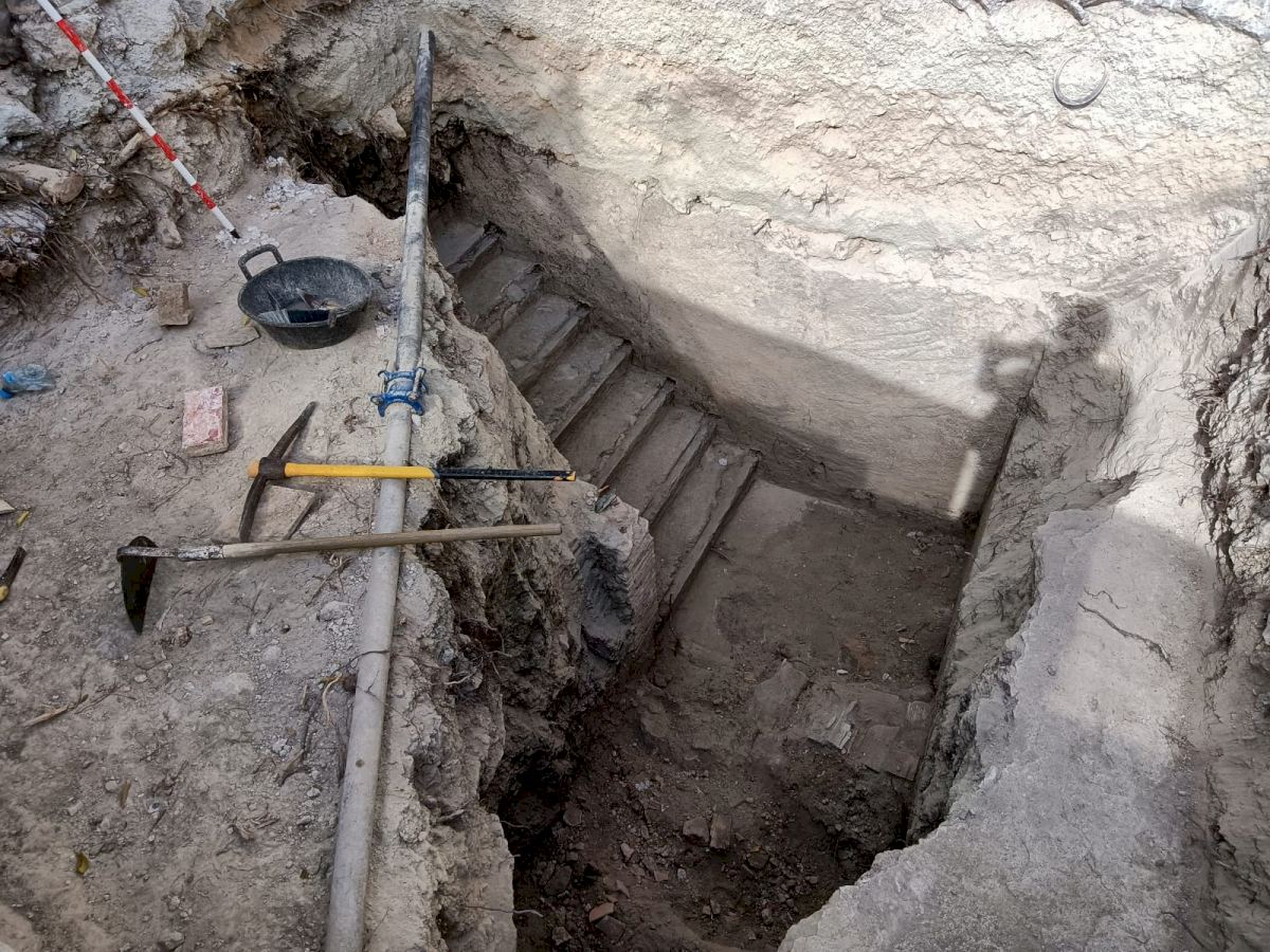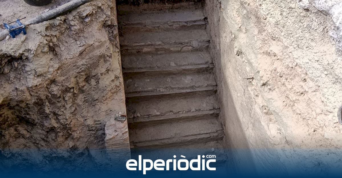 Las excavaciones sacan a la luz la entrada y las escaleras del refugio antiaéreo de la plaza de Baix