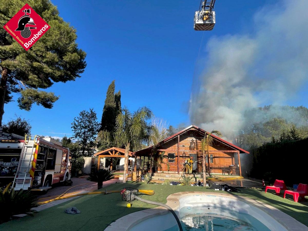 Un pavoroso incendio ha convertido en cenizas una casa de madera en el municipio alicantino de Petrer.