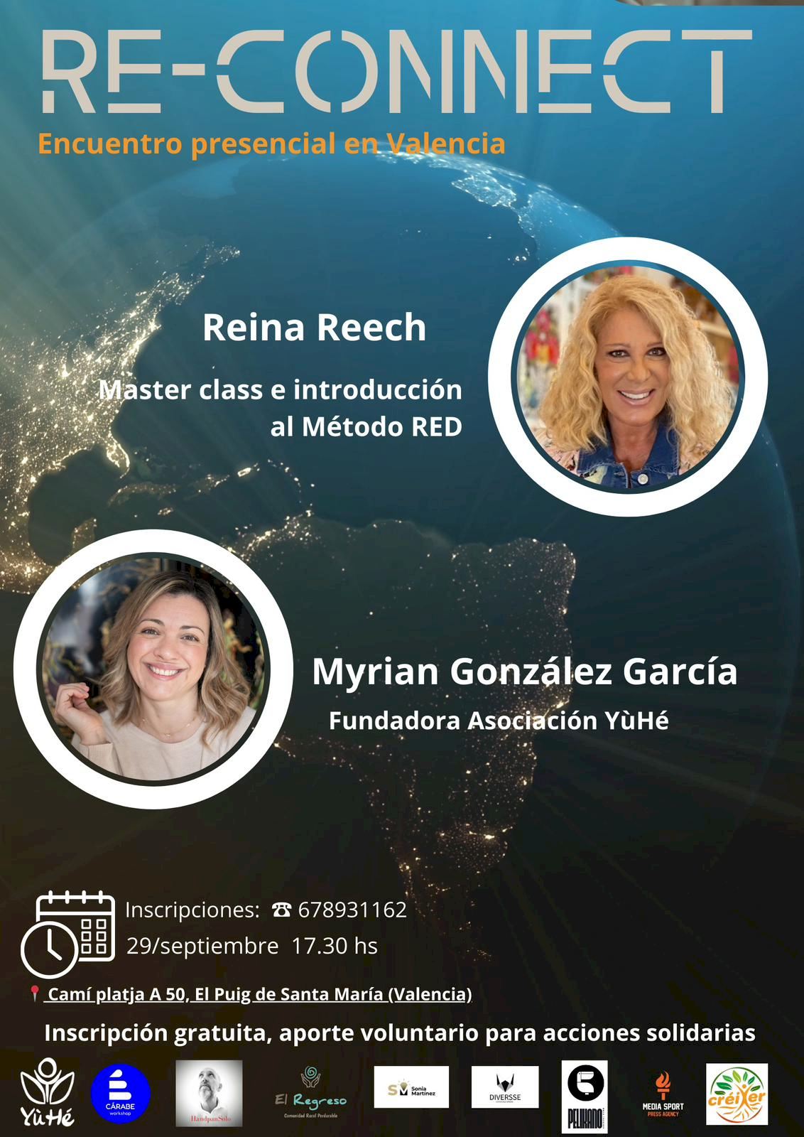 Reina Reech continúa su gira por España, en donde está presentando su libro ‘Reconexión espiritual’, y llega a Valencia de la mano de la asociación solidaria YùHé. El próximo viernes 29 de septiembre, la talentosa actriz, presentadora de televisión y destacada figura del mundo artístico, aterriza en la sala Pelikano Unusual Club, en la playa de El Puig de Santa María, para dar a conocer detalles de su obra literaria y de su método RED.