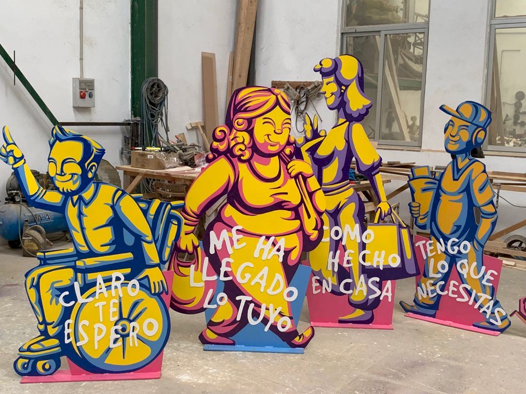 Esta nueva campaña se basa en la elaboración de unas “esculturas urbanas” llamadas “proxis” de imágenes con frases típicas del pequeño comercio. Personajes con diseños y colores divertidos y alegres, haciendo la compra en el pueblo, en locales cercanos donde el cliente se siente seguro, con confianza y con el trato personalizado que siempre ofrecen los profesionales de estos sectores.
