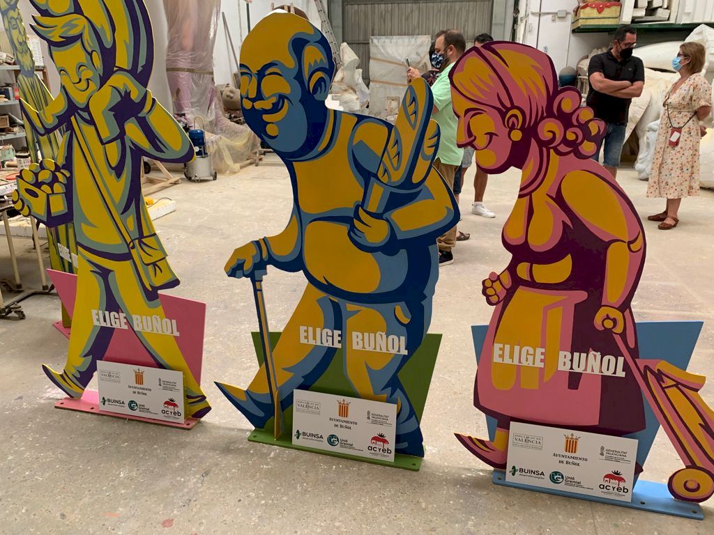 La Asociación de Comerciantes de Buñol y comarca, el Ayuntamiento y Unión Gremial lanzan una iniciativa pionera en toda la Comunitat con “esculturas urbanas” en la calle que impulsan la compra en el comercio local
