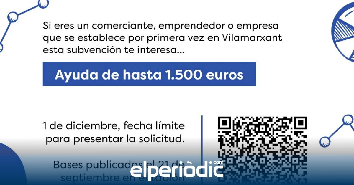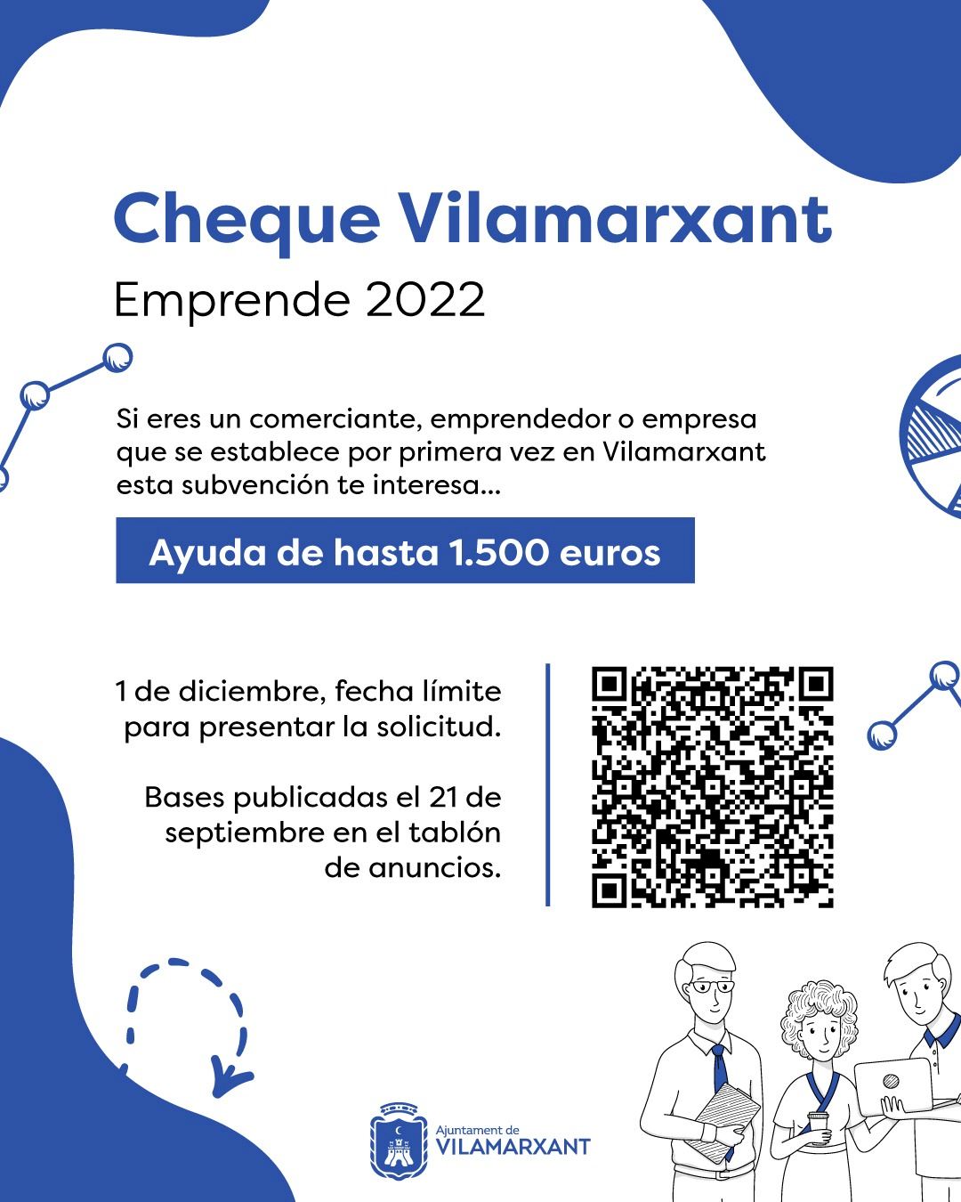 El Ayuntamiento de Vilamarxant, a través de la concejalía de Promoción Económica, ha lanzado el Cheque Vilamarxant Emprende 2022, una nueva subvención de hasta 1.500 euros para comerciantes, emprendedores o empresas que se establezcan por primera vez en el municipio.