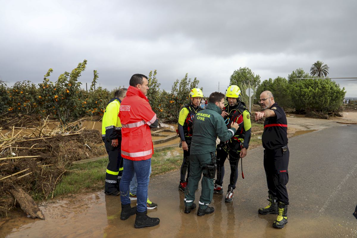 También se atiende saneamientos de fachadas y achiques, aunque la máxima prioridad es por el momento el rescate, como el que ha tenido lugar en l’Alcudia, donde el GERA han auxiliado via aérea a tres personas que habían quedado atrapadas entre el agua con su vehículo.