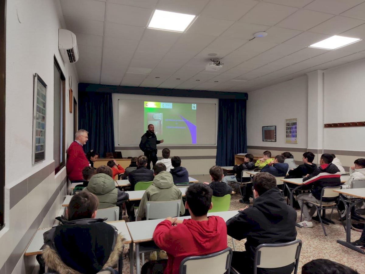 Una acción formativa en la que participaron los alumnos de la ESO y de Formación Profesional Básica, donde los agentes explicaron temas enfocados a evitar delitos cometidos mediante el mal uso de las redes sociales e internet, mostrando cómo identificar algunos de esos peligros como el grooming o sexting, e insistiendo en la precaución que deben tener al comunicarse mediante estos canales.