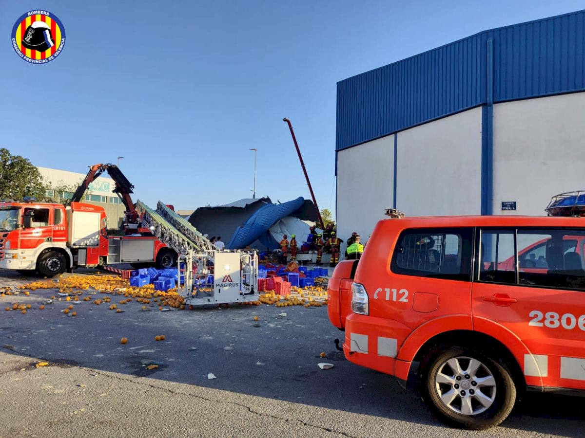 Muere un trabajador sepultado en el derrumbe de un almacén de naranjas de la Pobla de Farnals