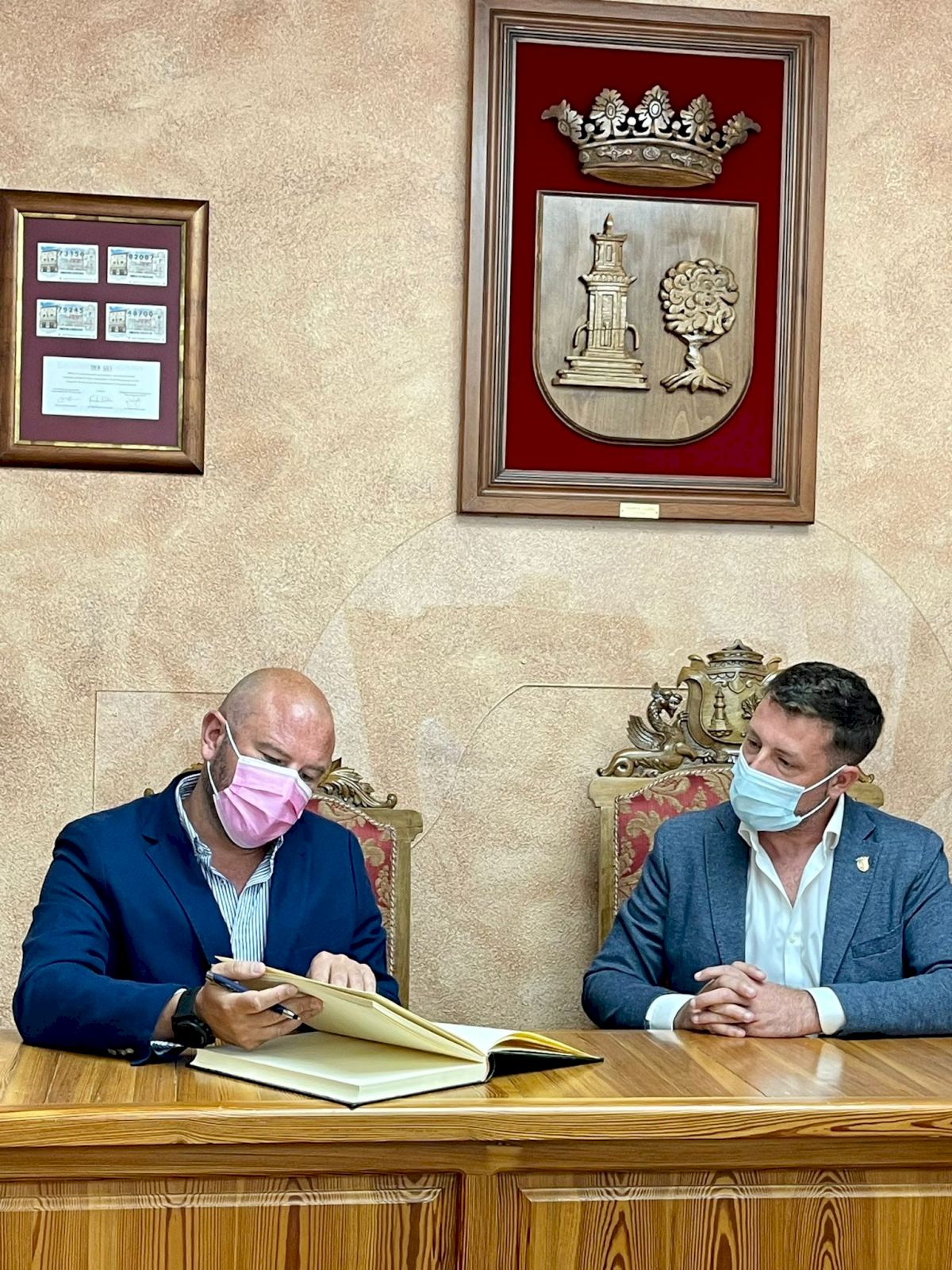 Toni Gaspar y Maria Josep Amigó han acudido además al ayuntamiento del municipio de La Costera. Allí el presidente de la Diputació, en presencia del alcalde y de varios concejales, ha plasmado su firma en el libro de honor de la casa consistorial.