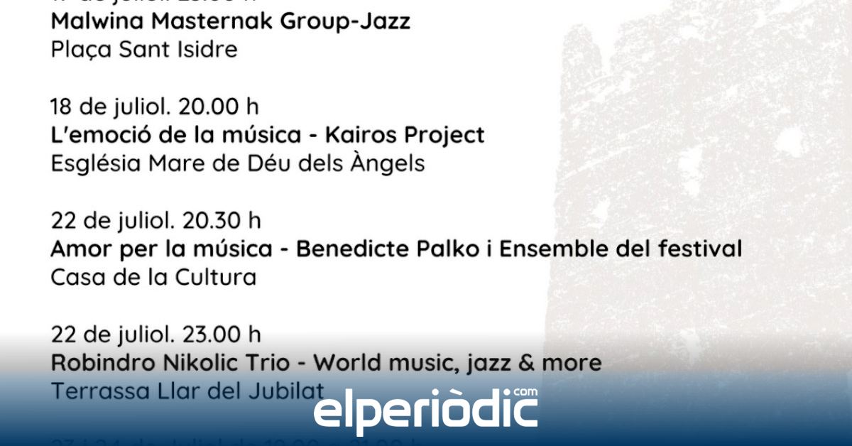 Así, los integrantes de las bandas de música de la localidad podrán acudir a las diferentes clases magistrales de cámara que se han programado durante tres días. Paralelamente se ofrecerán conciertos educativos para los más pequeños que acuden en la Escuela de Verano. Dos exposiciones musicadas cerrarán la primera parte del festival que tendrá su conclusión el 31 de julio con un concierto de orquesta de cámara que contará con el violinista francés Philipp Grafin.