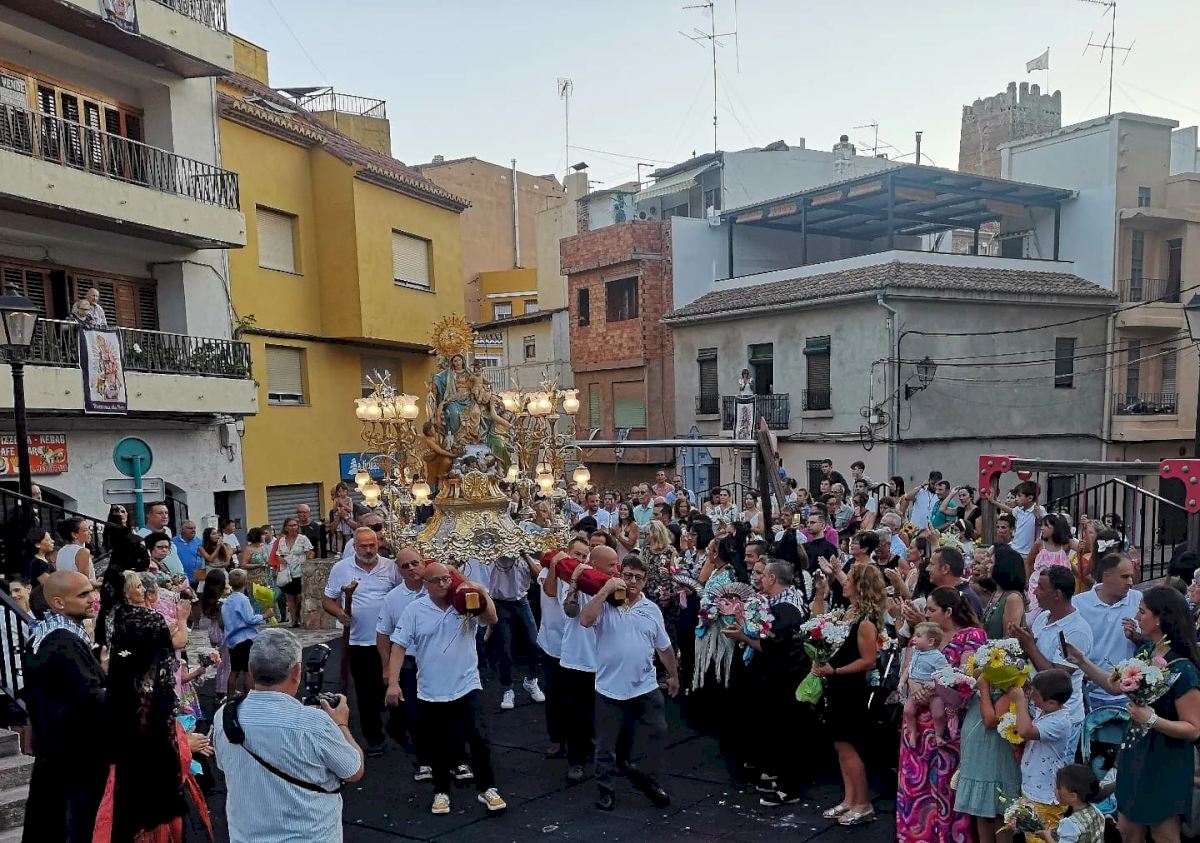 Como cada año la ofrenda de flores a la Mare de Deú dels Àngels convocó a todo el vecindario para rendir homenaje a la patrona, desde asociaciones, clavarías y colectivos festivos. Este año, el Ayuntamiento ha recuperado la tradicional “nit d’albaes” que empezó en la iglesia e hizo parada al consistorio y en las casas de los máximos representantes de las fiestas.