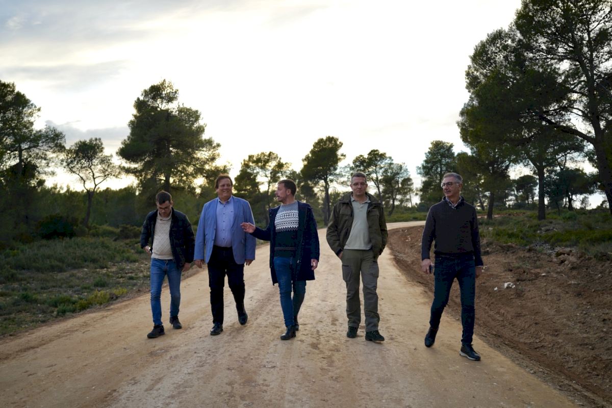 El secretario autonómico de Emergencia Climática y Transición Ecológica, Francisco Candela, y el director general de Medio Natural, Júlio Gómez, junto al alcalde de la Font de la Figuera, Vicent Muñoz, han visitado la finalización de las obras de acceso a la zona de acampada y recreativa del Regaixo en la Font de la Figuera.