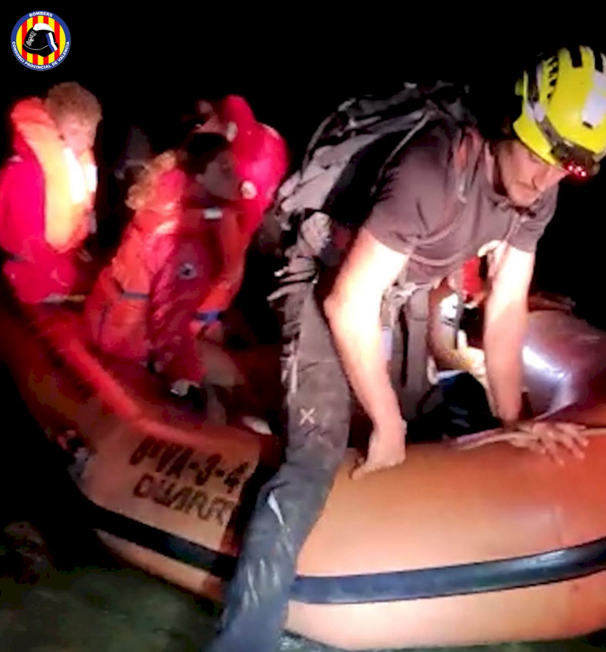 El grupo de rescate de bomberos pusieron a salvo a estas tres personas