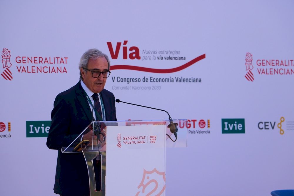 Presidencia de la Generalitat Valenciana y los agentes sociales (CC.OO. UGT y CEV), en colaboración con el Ivie, han presentado esta mañana en Alicante el V Congreso de Economía Valenciana, una serie de encuentros que se desarrollarán entre junio y noviembre y cuyo objetivo es construir visiones y estrategias compartidas para afrontar los retos que plantea el futuro económico en la Comunitat Valenciana.