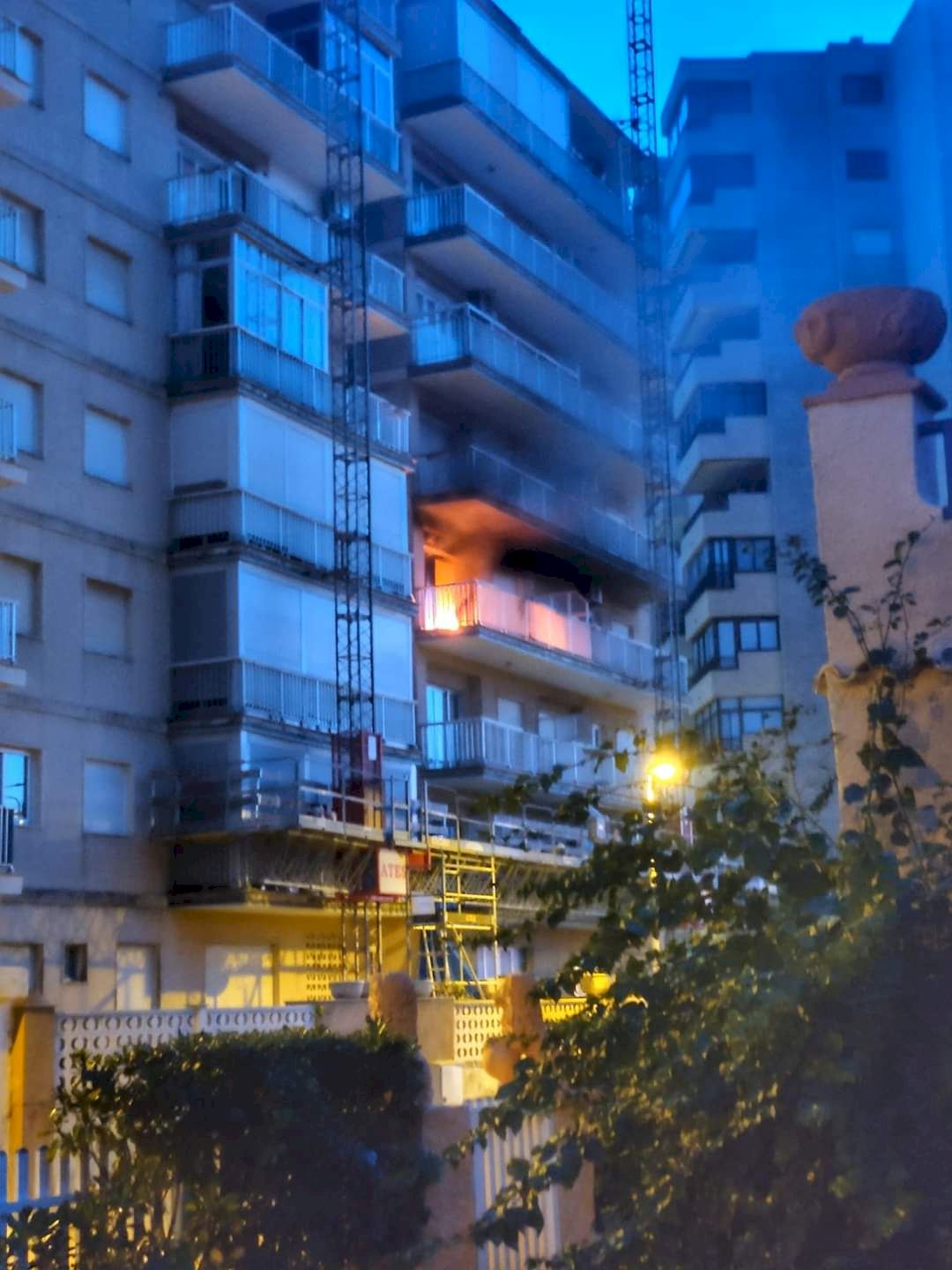 Según han explicado los bomberos, una vecina de 60 años ha logrado a logrado salir de su vivienda saltando al balcón del bloque de pisos adyacente a través del andamio de una obra y con la ayuda de los vecinos.