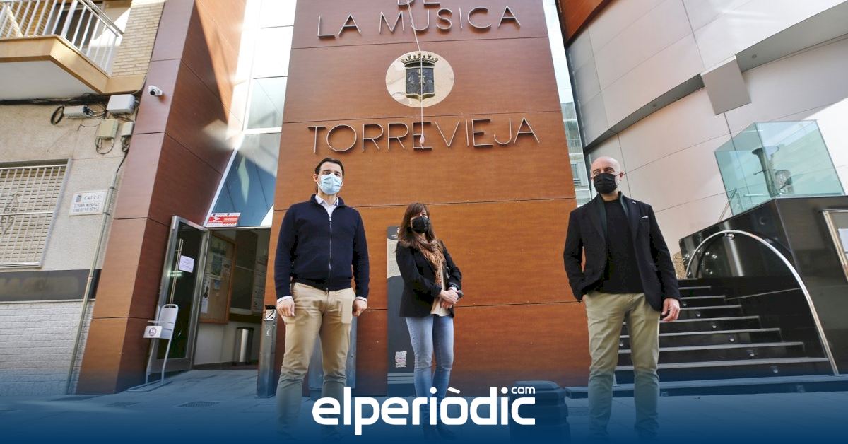 El alcalde de Torrevieja, Eduardo Dolón, junto con los concejales de Servicios y Patrimonio, Sandra Sánchez y Antonio Quesada, respectivamente, han visitado en la mañana de hoy el Palacio de la Música, tras haber finalizado los trabajos de reparación integral de su fachada.