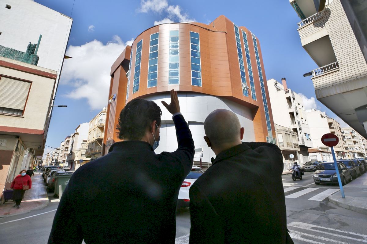 El alcalde de Torrevieja visita el Palacio de la Música tras finalizar los trabajos de reparación integral de su fachada