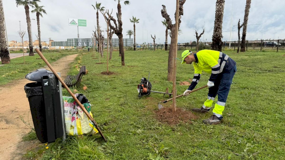 Parques y jardines de Torrevieja realiza nuevas plantaciones de árboles en la zona de el limonar y renueva el mobiliario urbano