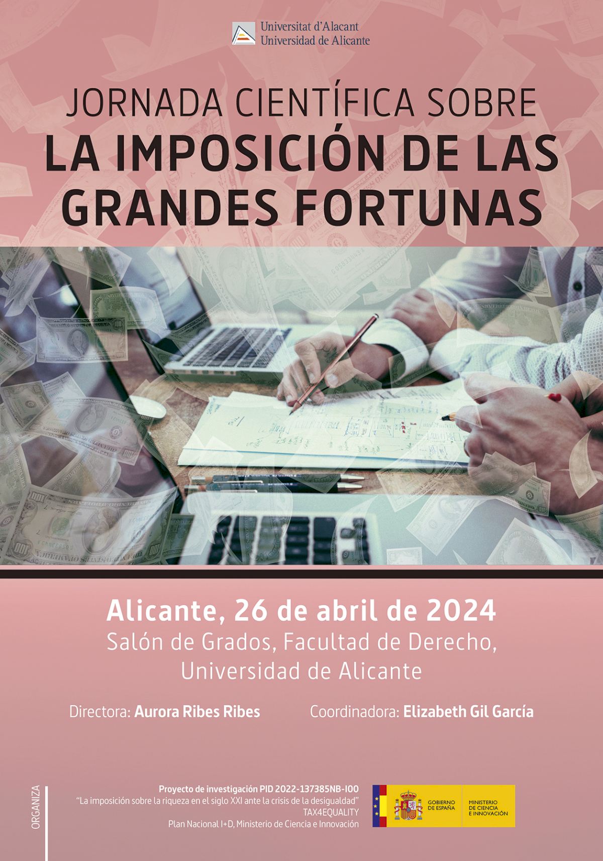 La imposició a les grans fortunes serà el centre del debat de la jornada científica que demà, 26 d’abril, tindrà lloc a la sala de graus Rector Ramón Martín Mateo de la Facultat de Dret de la Universitat d’Alacant.