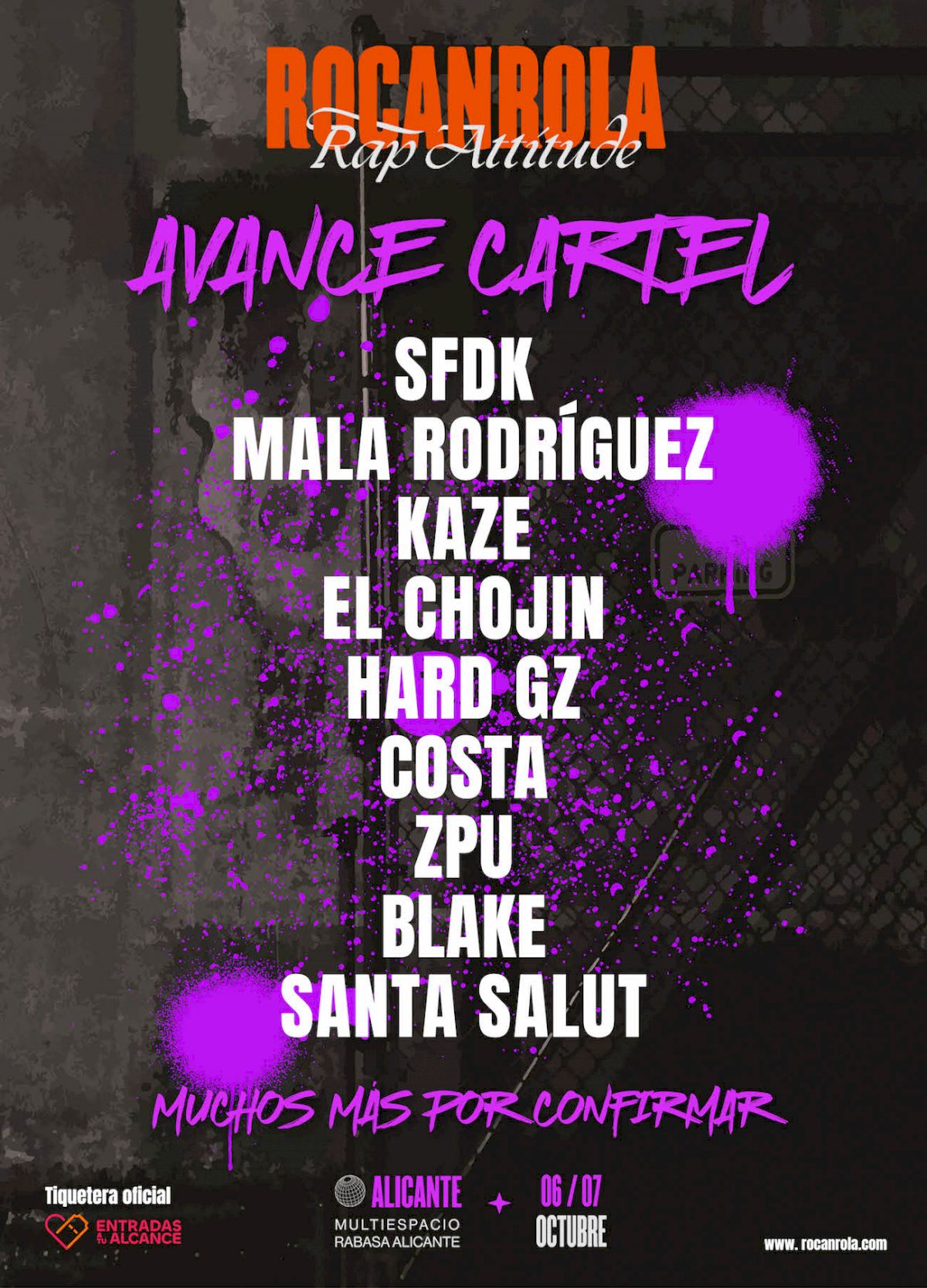 ROCANROLA FESTIVAL anuncia els seus primers artistes confirmats: SFDK, MALA RODRÍGUEZ, KAZE, EL CHOJIN, HARD GZ, COSTA, ZPU, BLAKE, i SANTA SALUT. En els pròxims dies s'anunciaran molts més artistes confirmats.