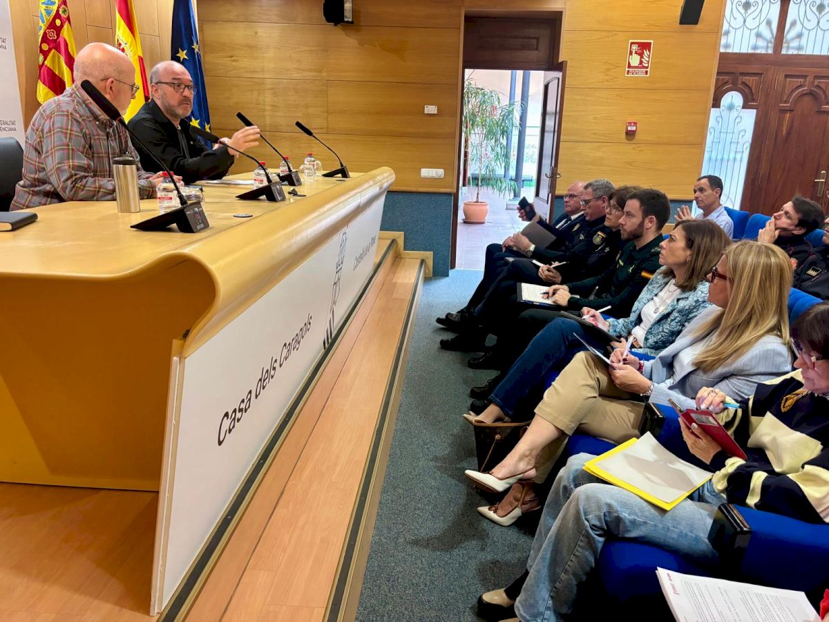 L’alcaldessa d’Almassora, María Tormo, junt amb la regidora de Seguretat Ciutadana, Silvana Rovira, i l’intendent de la Policia Local, José Alós, ha participat en la reunió operativa organitzada per l’Agència Valenciana de Seguretat i Resposta a les Emergències (AVSRE), celebrada a la Casa dels Caragols, per a avançar en l’organització d’un simulacre al polígon industrial del Serrallo.
