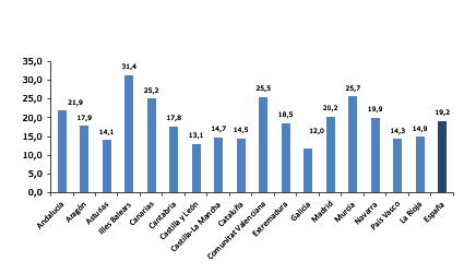 Amb les xifres donades a conèixer avui, la Comunitat Valenciana ocupa la tercera posició del país quant a la taxa de víctimes de violència de gènere per cada 10.000 dones, amb una ràtio de 25,5, només per darrere de les Balears, amb 31, 4, i Múrcia, amb 25,7. La mitjana nacional va ser en aquest període de 19,2 víctimes per cada 10.000 dones.