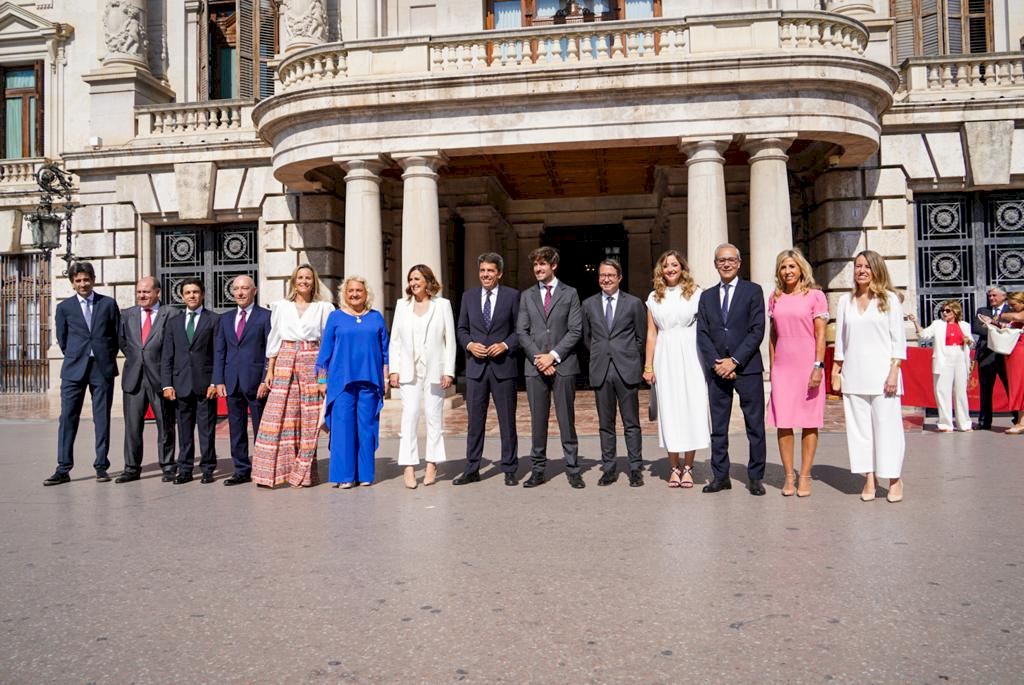 A las diez de la mañana comenzaban a llegar los primeros ediles al Ayuntamiento. Los primeros han sido los de Vox: Juanma Badenas, José Gosálbez, Mónica Gil y Cecilia Herrero; le han seguido los concejales del PSOE Sandra Gómez, Borja Sanjuan, Maite Ibáñez, Nuria Llopis, Javier Mateo, Elisa Valía y María Pérez; luego han llegado los ediles de Compromís Joan Ribó, Papi Robles, Glòria Tello, Pere Fuset, Sergi Campillo, Lucía Beamud, Giuseppe Grezzi, Ferran Puchades y Eva Coscollà y finalmente han llegado los concejales del PP María José Catalá, Juan Carlos Caballero, María José Ferrer, José Marí Olano, José Luis Moreno, Paula Llobet, Julia Climent, Santiago Ballester, Juan Giner, Jesús Carbonell, Carlos Mundina, Marta Torrado y Rocío Gil.