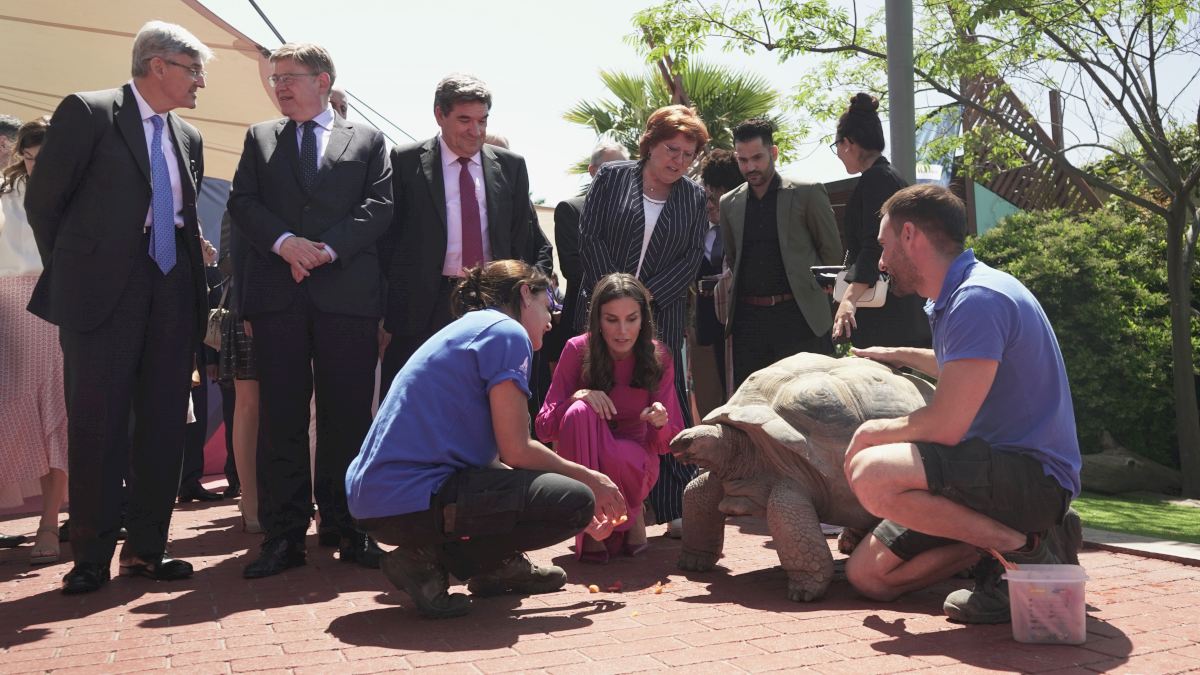 La reina Letizia conoce a Darwin, la tortuga gigante del Oceanogràfic