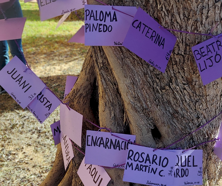 Esta jornada reivindicativa ha empezado con la colocación en uno de los centenarios olivos del jardín del edificio, de lazos con el nombre de todas las víctimas, mientras se leía su nombre en voz alta. A continuación se ha leído el Manifiesto firmado por todas las asociaciones en el que se reivindicaba, entre otras cosas, la importancia de crear una sociedad en la que todas las mujeres puedan vivir en independencia y libertad, sin miedo a desarrollarse como seres humanos completos.